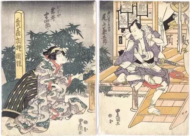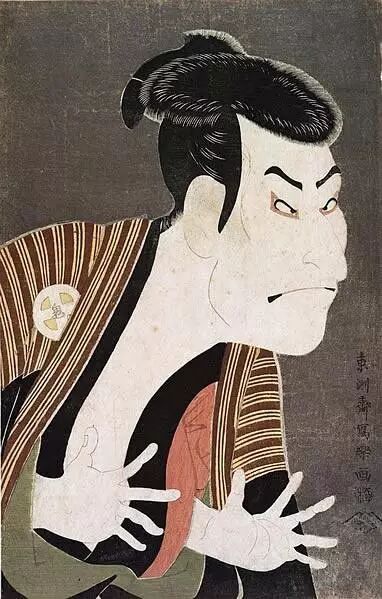 役者画指的是歌舞伎演员的画像。妓馆和剧场是江户人主要的消遣场所,艺伎和歌舞伎是游乐界得宠的偶像,通过版画做成的“美人画”与“役者绘”也随之走俏,大肆流行与市井之间,成了老少皆宜、雅俗共赏的庶民艺术。役者画刻画的是从事歌舞伎表演的人气演员。歌舞伎町是吉原地区除了风月场所以外的另一重要代表场所。江户文化的三大支柱即为:歌舞伎、吉原与浮世绘。歌舞伎演员全部为男性,因此高明的画师需要在表现女性扮相的画作中暗示性地体现演员的男性身份。役者画的名称:虽然很长,但都有格式可循,例如《三代目尾上菊五郎之屋新兵卫》,其中:“三代目”指的是第三代传人;尾上菊五郎”指的是演员的名字;“屋新兵卫”指的是演员所饰演的角色。